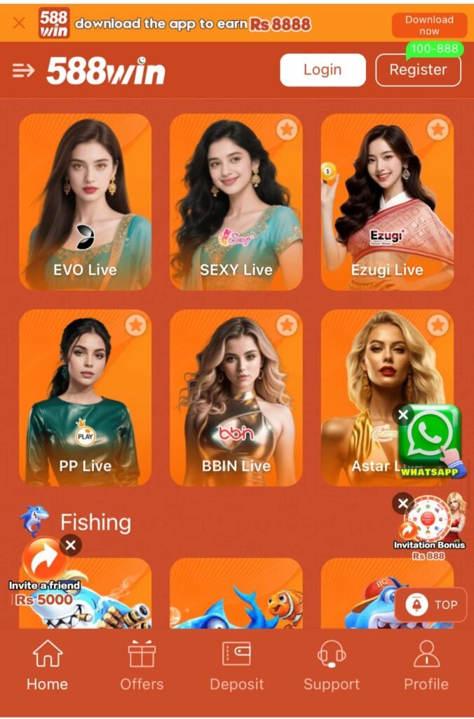 588 Win Game download is an online platform for casino, card, and skill-based games. Players can enjoy classic casino games like roulette, blackjack, and slots, as well as regional favorites such as Teen Patti and Andar Bahar.