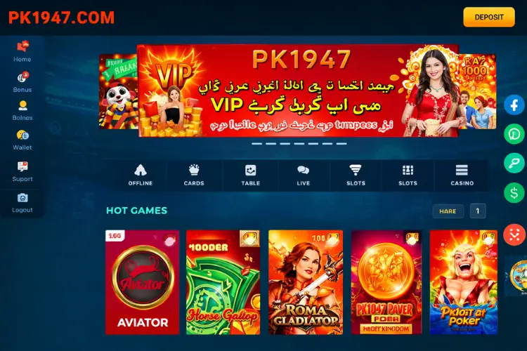 The PK1947 real money game supports local payment methods like JazzCash and EasyPaisa, which makes it more reliable and user friendly for Pakistani players. Whether you like slot games, poker, or live solt games, PK1947 has everything in one app.Another reason why users trust this app is its fast cash system.